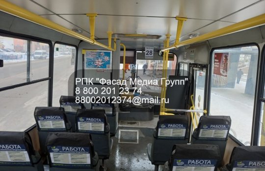 Реклама на подголовниках и спинках сидений в общественном транспорте отлично зарекомендовала себя как эффективный способ рекламирования товаров, услуг и набора персонала